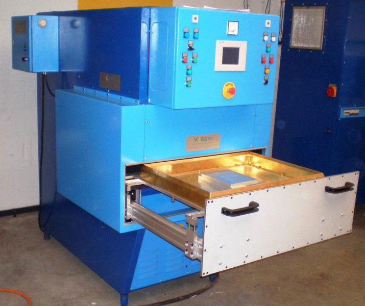 Kiefel HF lasmachine 30kW-100kN met automatisch etage-schuiftafelsysteem.